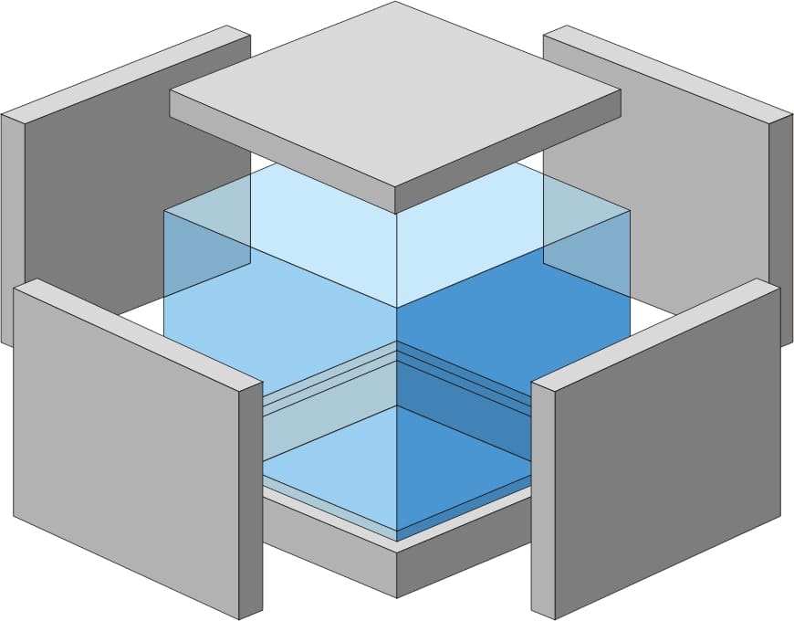 頑強なPC基礎の上にPC壁、その上にPC床が強力なボルトでしっかり組み立てられ、強固に一体化した箱になります。