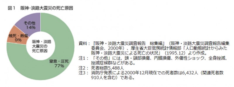 下の図は、2000年に発表された阪神淡路大震災の死亡原因を表したものです。