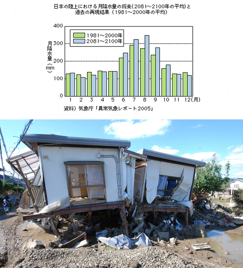 1.巨大化する台風による住宅被害。