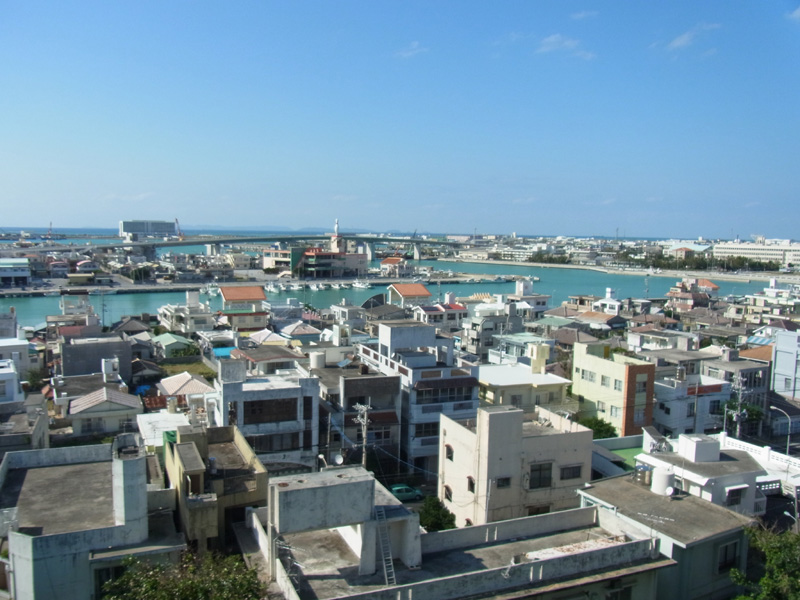 コンクリート住宅が並ぶ沖縄の風景