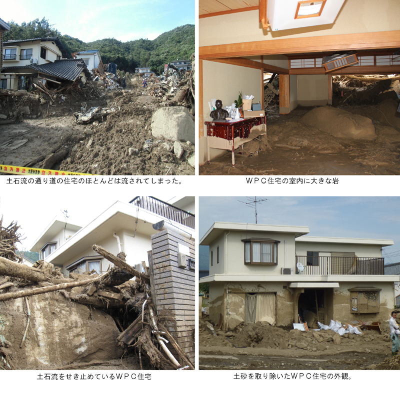 下の写真は、2014年8月に広島県の安佐南区で発生した土石流に耐えたWPC住宅