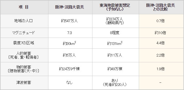 阪神・淡路大震災の被害と東海地震の第3次被害想定との比較