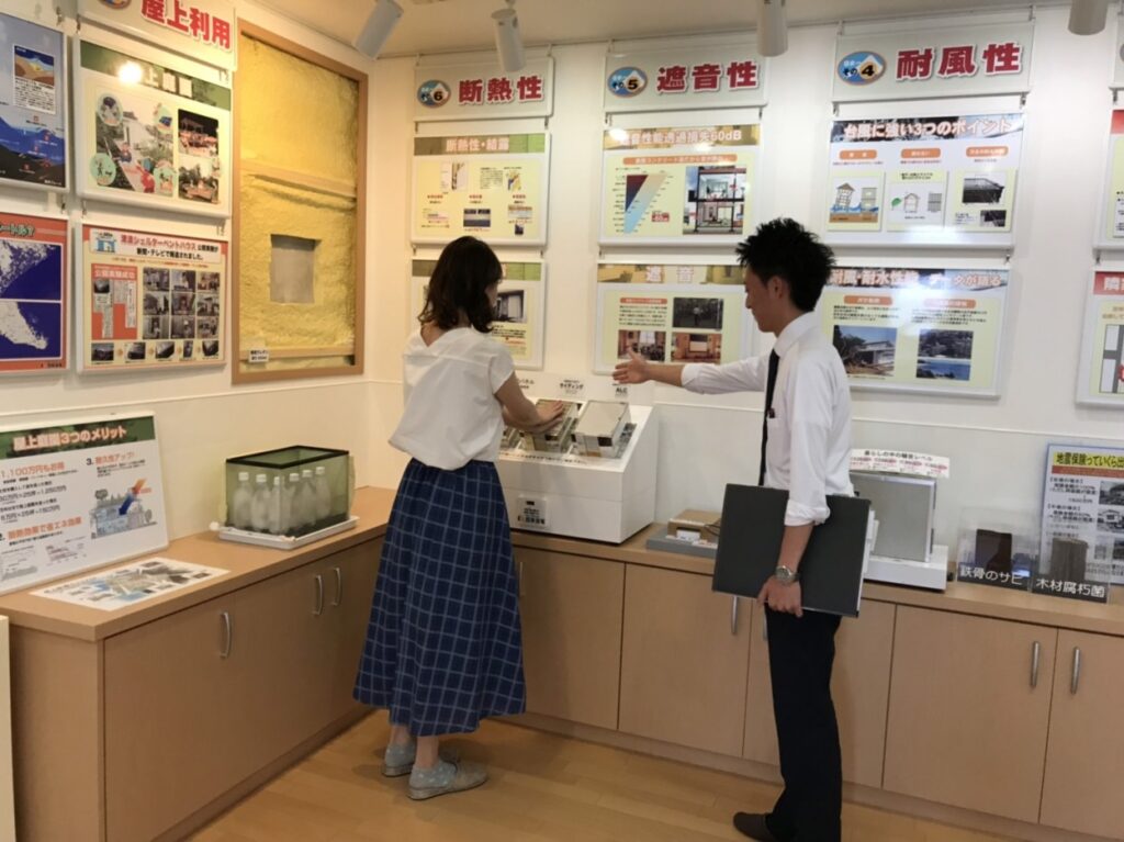 展示物を見たり、模型を触ったりして強くて長持ちする百年住宅を気に入ってくださっていました。