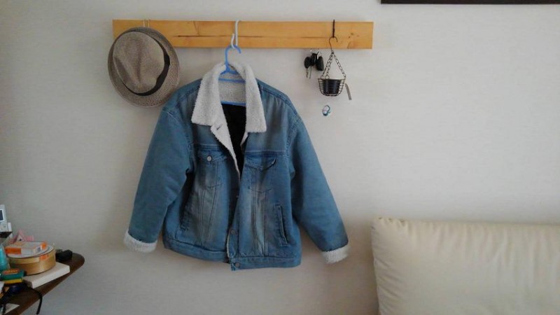 作品を紹介します。まずは簡単な棚板です。部屋の壁に飾りました。これは2X4 1枚で作成。