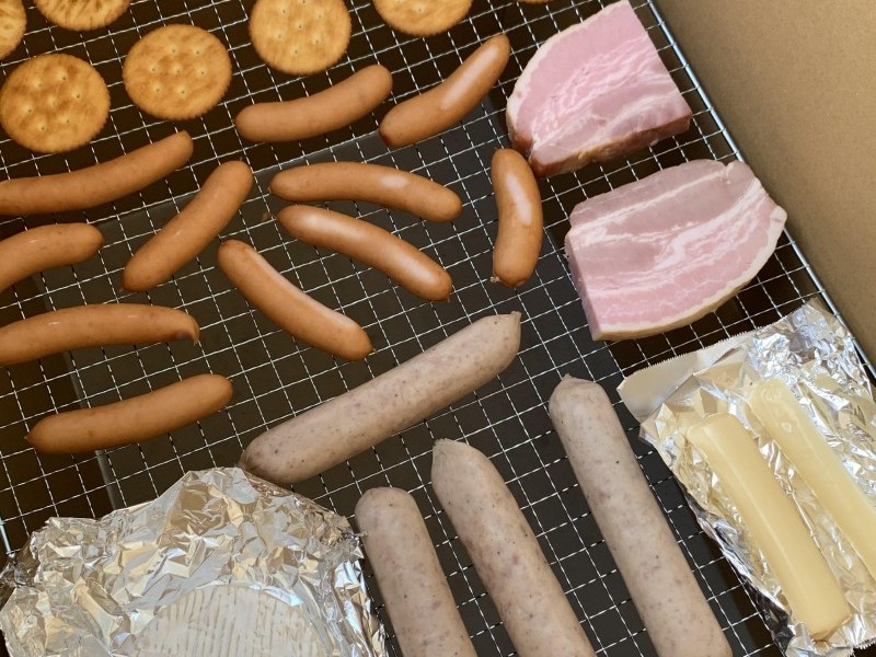 燻製の食材には、ウインナー、厚切りベーコン、チーズ、ナビスコのリッツなど