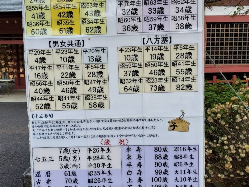 厄年表です。