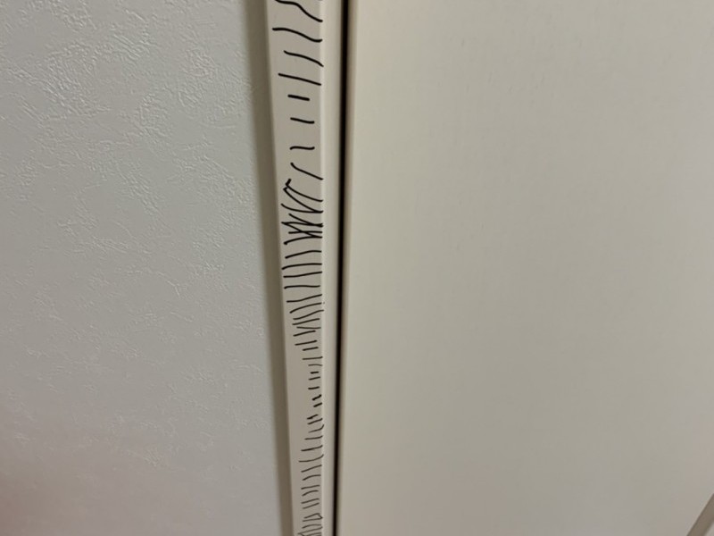 いつの間にか、クローゼットの枠に油性マジックのバーコードが描かれておりまして。