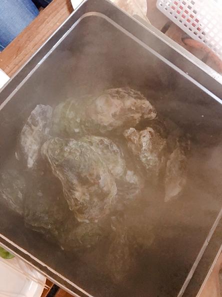 ↓名物の牡蛎のガンガン焼き