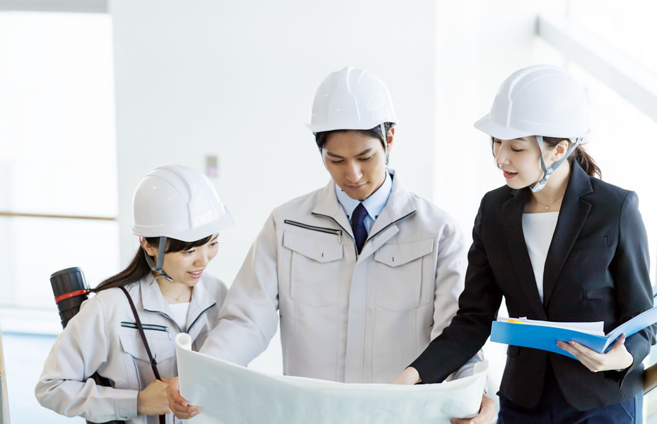 現場監督、職人さんと情報を共有し、密な連携を行います。