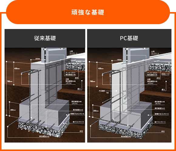 確かな地盤対応 軟弱な地盤には確実な基礎補強