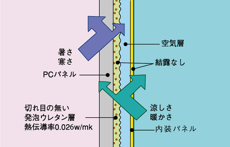 徹底的に空気と水分を追い出して高密度にしてありますから、蓄熱性、防露性、水密性にすぐれています。