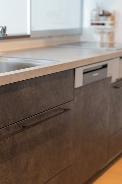 グレーが効いた落ち着きのある大人のキッチン空間