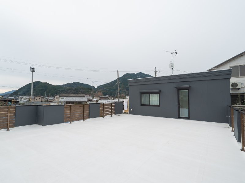 2階に上がると、プラスαで設けた多目的ルームの隣りに、広々としたバルコニーが広がります。屋上庭園のような広さと開放感がなんとも魅力的!娘さんのお気に入りの場所で、気分転換に空や星を眺めたり、夏は花火が見られるそうです。
