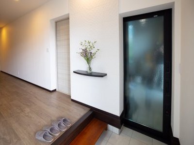 さらに、玄関正面にシューズクロークを設置。扉でシューズクロークの中が見えないため、玄関まわりがすっきりした印象に。急な来客にも慌てずにすみます。至るところにご夫婦のこだわりが感じられる、夢の詰まった素敵な住宅です。