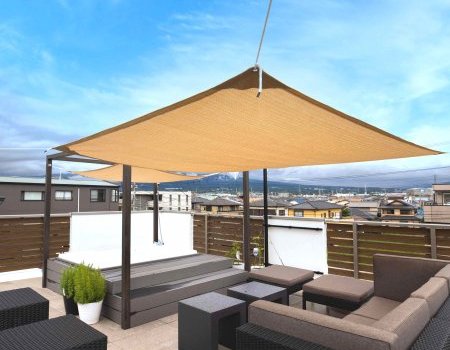 家族連れの友人を招待してのパーティーでも大好評の屋上リビングです。(撮影日は富士山付近が曇っていて、運悪く見ることができませんでした。。)