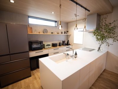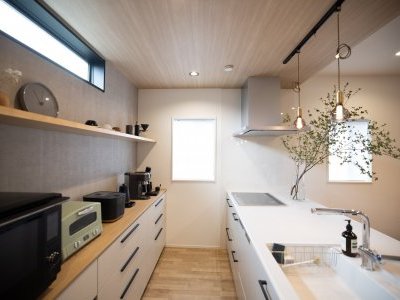 キッチンの前面収納で リビングから生活感を排除