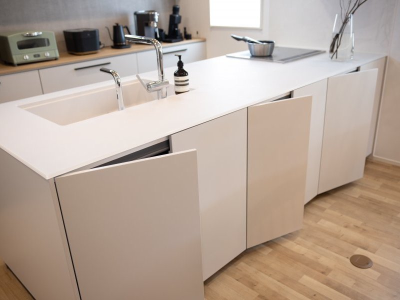 空間を広く見せてくれる フルフラットなオープンキッチン