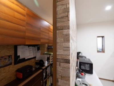 シューズクロークやファミリークローゼット、キッチン背面の収納スペースには、DIY対応の壁材「デュライク」を採用。棚やフックを自由に取り付けられるので、暮らしの変化に合わせて空間を柔軟に使いこなすことができます。