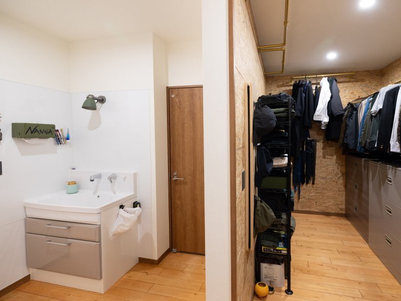 玄関から洗面台、ファミリークローゼット、そしてリビングへとつながる動線は、日々の使いやすさを徹底的に追求。「帰ってすぐに手洗いや着替えができて、服もここにまとめて収納。片付けもスムーズです」と奥さま。