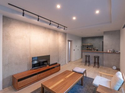 ガレージで趣味に没頭し、キッチンやパントリーで家事をスムーズにこなし、ワンフロアで家族の気配を感じながら過ごす時間——コンクリートの力強さの中に、家族それぞれのやさしさや個性が息づく住まいです。