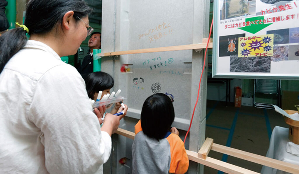 周囲の木が折れ、地域に大きな被害を及ぼした台風のときでさえ、雨戸を閉めた家の中では吹き荒れる風や雨をほとんど感じなかったそうです。秘密は、普通のコンクリート住宅と違うから。『百年住宅』に使用しているPCパネルは、護岸工事などにも使われる非常に密度の高いもので、一般の現場打ちコンクリートの2倍、軽量コンクリートの10倍もの強度を誇ります。水がしみないから錆びない、腐らない。故に、さまざまな災害や害虫から家を守ることができるわけです。