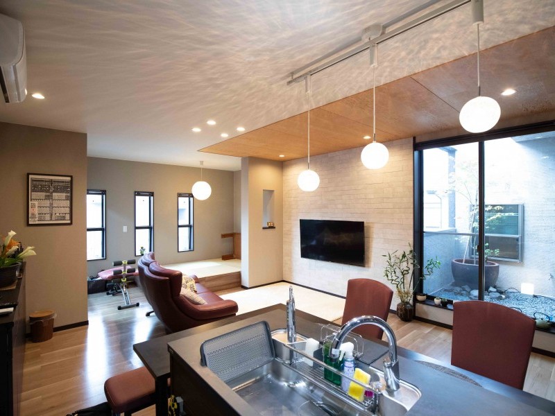 和モダンをテーマに、ご主人様のこだわりがふんだんに取り入れられられていて、外観から内観まで見事に大人で上品な和モダンで統一された居心地の良い空間となっています。