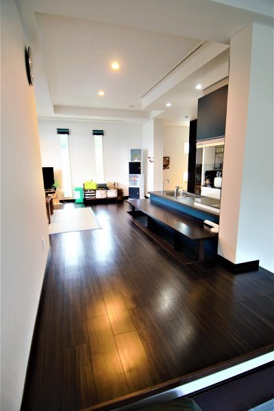 また、「部屋のほぼ中心にキッチンがあるので、料理を作っていても子供たちがどこにいるのかわかるので安心で快適です」と若奥様もお気に入りの様子です。小学1年生と3年生のお子様にとってもお母さんがいつも見守っていてくれて、幸せいっぱいのようでした。