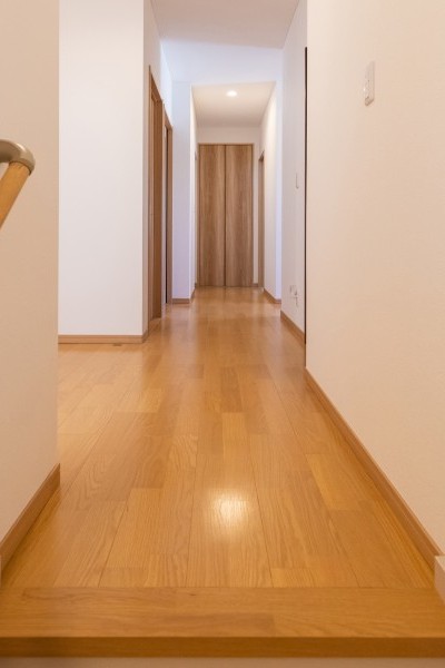 ご夫婦のこだわりが家の中の至るところに表現されていて、信頼のもとに出来上がった家にご満足いただけているご様子でした。リビングや屋上以外にも、スタイリッシュなコンクリート打ち放し模様の外観、各部屋に続くやわらかい色調の長い廊下、圧迫感のない階段のデザイン、リビングの収納や小上がりの和室など、家の中の至るところにお気に入りのポイントがあるようです。