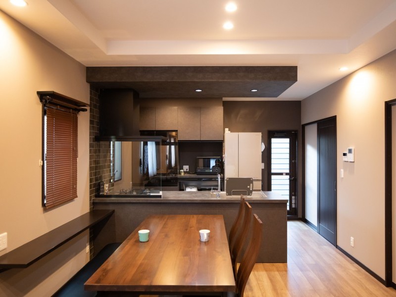 ダークカラーを多用したキッチンのプレミアム感をを引き立てています。「今では、家の中で一番お気に入りの場所だから、毎日キッチンに立つと楽しい気持ちになります。オープンキッチンでダイニングテーブルと近いということもあり、家族との会話も弾みます。」と家族の笑顔を眺めるオープンキッチンと、快適なLDK空間に満足されているようでした。