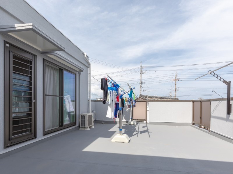 広々としたベランダは、5人分の家族全員の洗濯物を干すスペースとして十分な広さで、「以前は日々の洗濯物干しのスペースの確保にかなり苦労していましたが、今は十分なスペースがあるので、考える事もなくなり洗濯時間も短縮できています」と奥様。