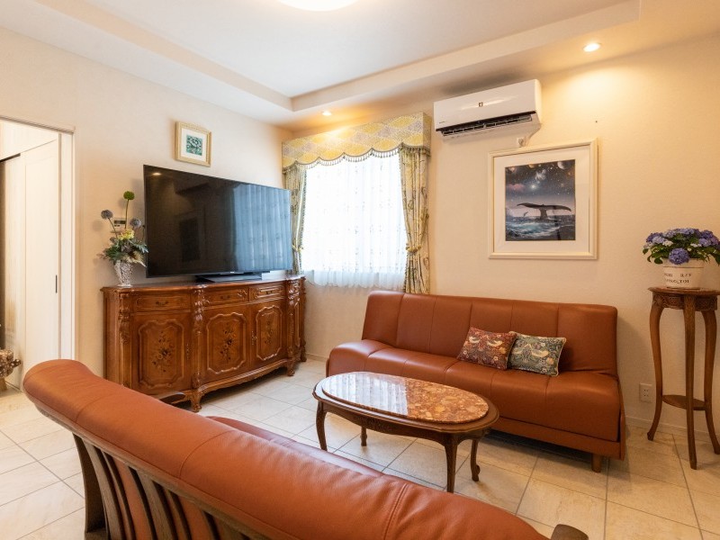 こだわりのインテリアや家具の品々、そして屋上はドッグランとして活用し、それぞれの空間を大切にしてみんなが心地よく過ごせる上品なタイル張りのお住まいとなりました。