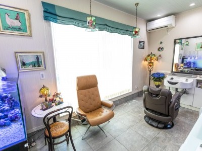 住宅の1Fに併設した、アンティークを取り入れた豪華な雰囲気の美容室。