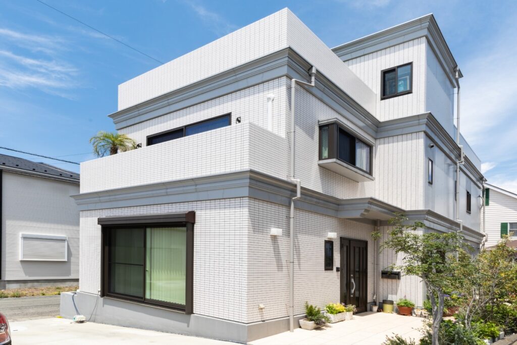 美容院を併設した店舗併用住宅 & 開放感あふれる屋上ドッグラン。それぞれの空間を大切にした白いタイル張りの上品な家。【沼津市 店舗併用の注文住宅】