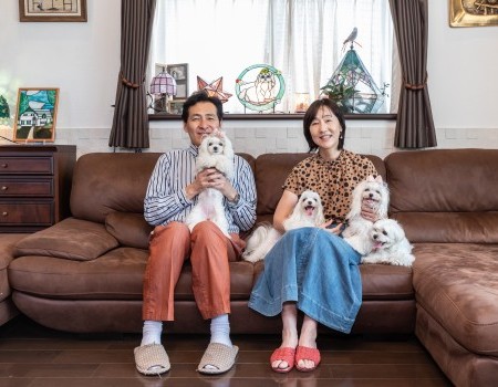 交通量の多い道路に面していますが、遮音性の高い百年住宅の構造によって「車の音が全く聞こえないから、家族みんながゆっくりとくつろげる空間です」とM様。もともとは2匹だったマルチーズですが「遮音性が本当に高くて近所に心配することもないので、さらに2匹増ふやして4匹になりました」と奥様がおっしゃるように、遮音性の高さはペットと暮らすことに関しても大きなメリットとなっているようで、防音室並みの高い遮音性能にご満足いただけているようです。