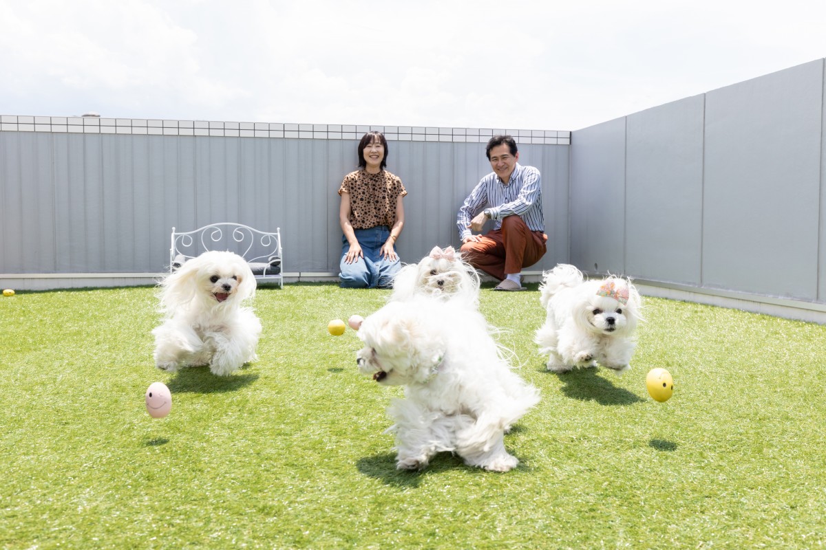 4匹のマルチーズは屋上のドッグランスペースが大のお気に入りの遊び場のようで、“屋上”という言葉が聞こえるだけでも大興奮してしまうそうです。