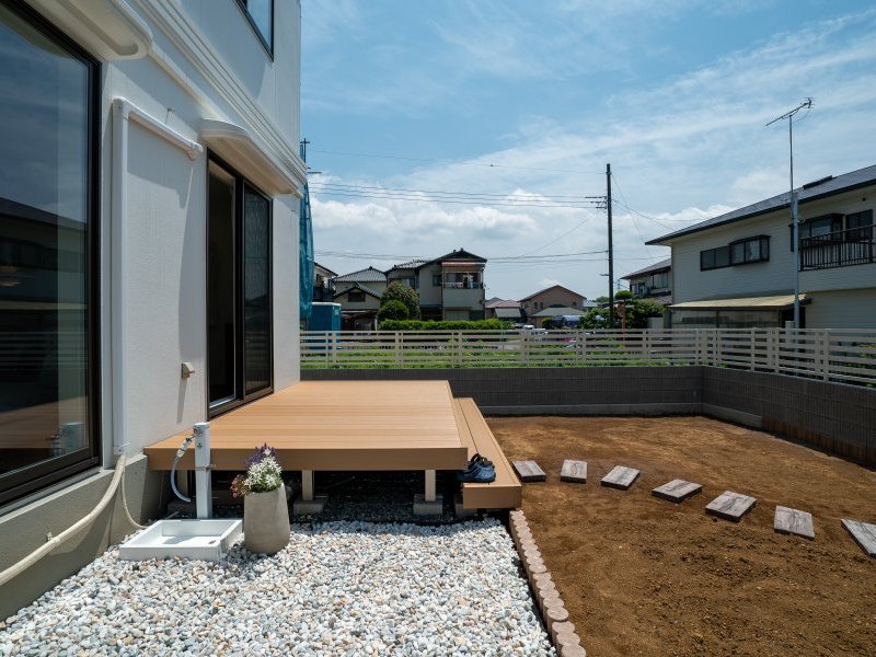 LDKとつながるウッドデッキ&ガーデン リビングの先に景色を作る楽しみも!