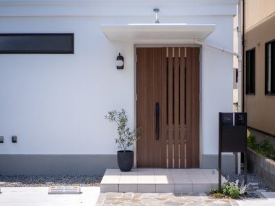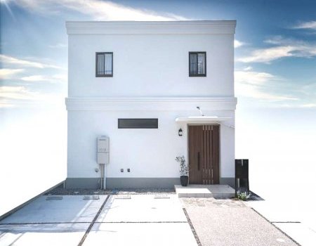 ご両親が建てた百年住宅で、耐震性や遮音性を体感されたFさまご夫妻。白を基調にしたシンプル&ミニマルな外観は潔い美しさを放ち、こだわりのリビングルームは心からくつろげる大人の空間です。