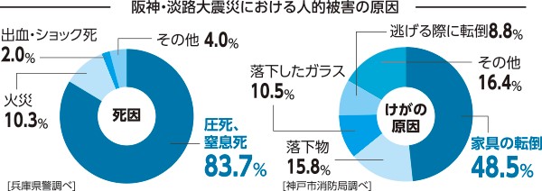 地震による人的被害の多くは、建物の倒壊が原因です。
