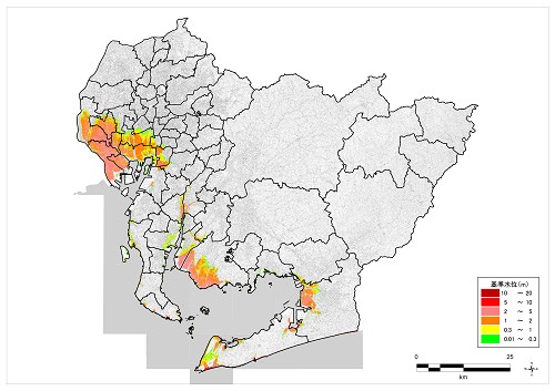 特に沿岸部では最大20メートル前後の津波浸水も想定され、また液状化の発生リスクも指摘されています。