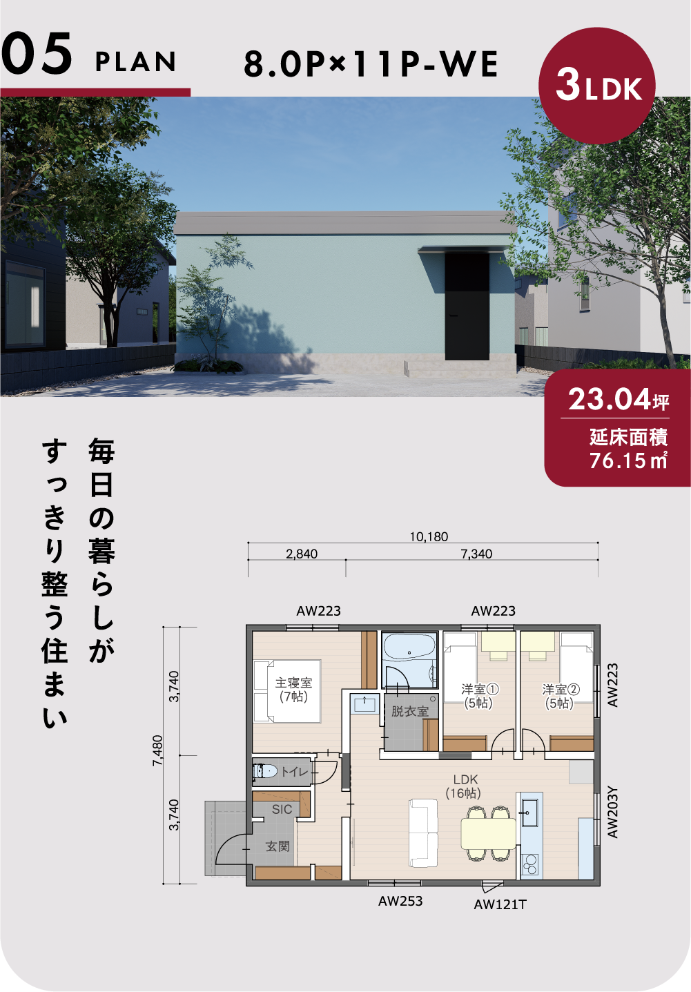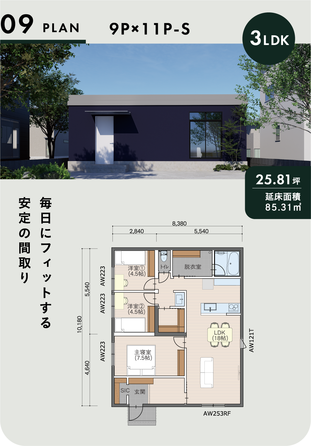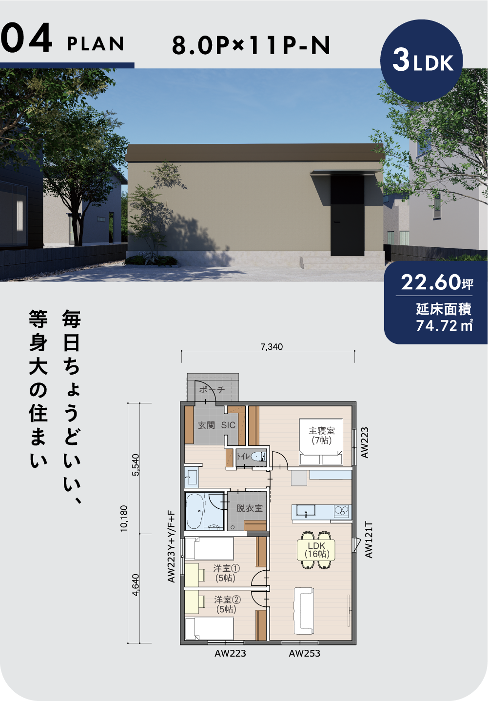 シンプルでわかりやすい設計により、工期とコストを抑えながら、理想の平屋を実現。
