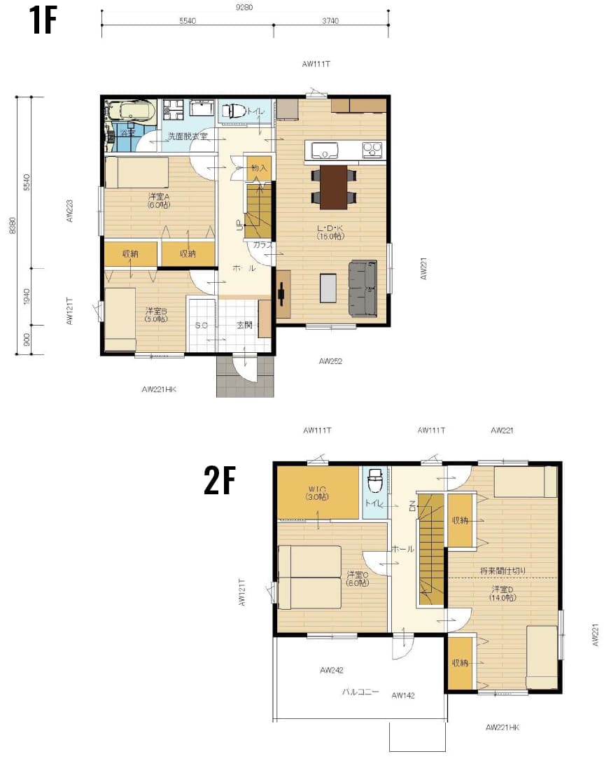 ■ 1階床面積:16.96坪 ■ 2階床面積:16.96坪
