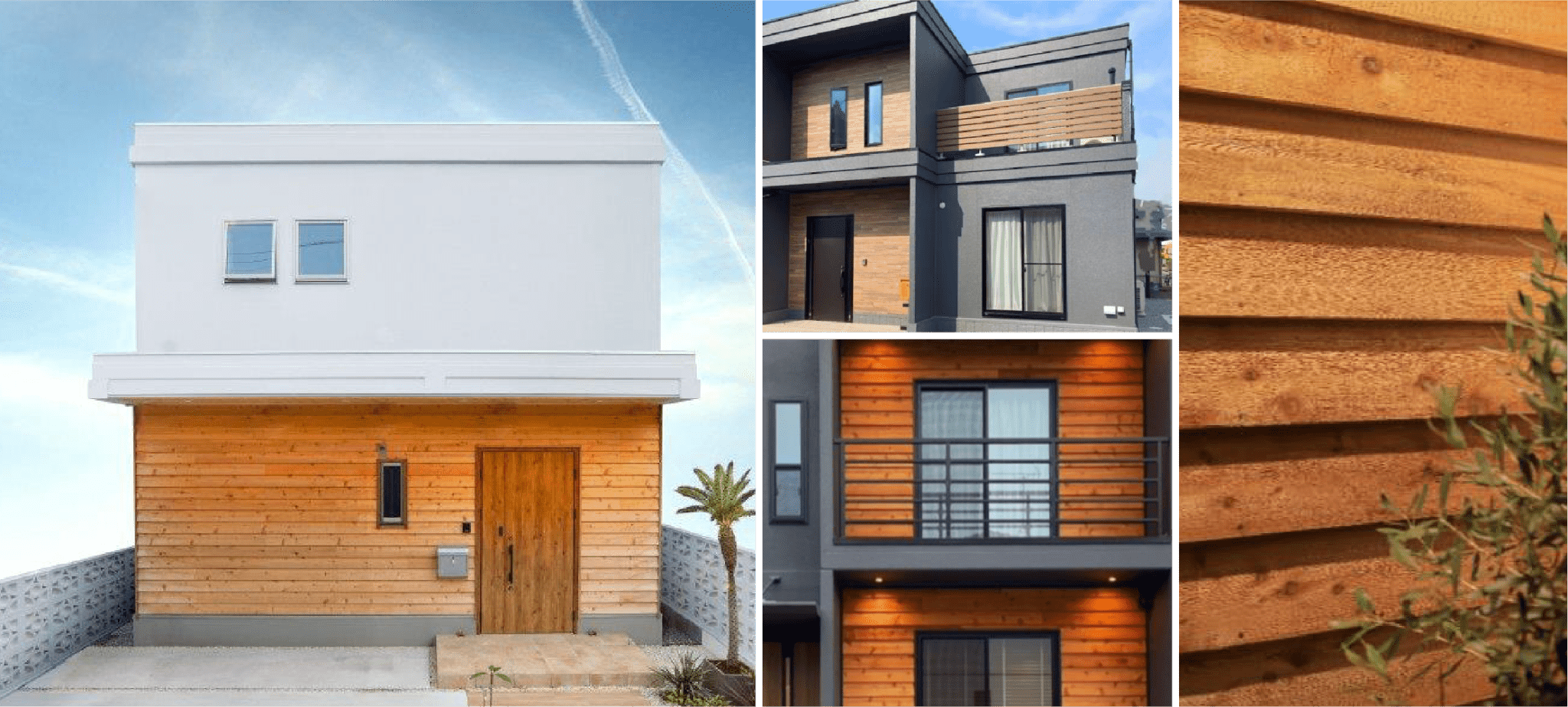 天然木サイディングを正面に施すことでコンクリートの強さが引き出される。