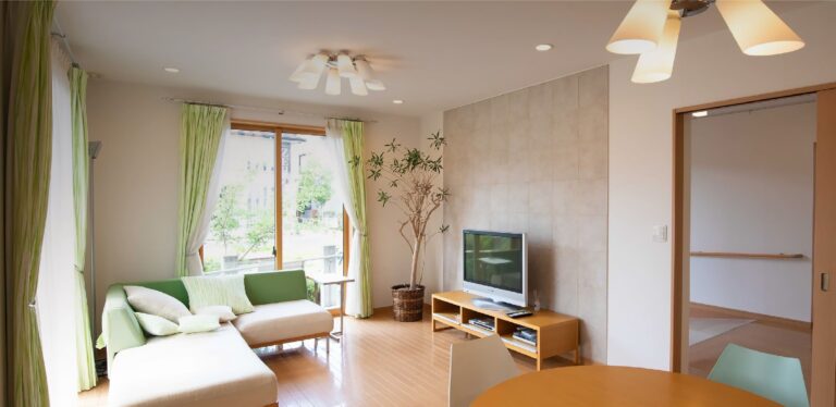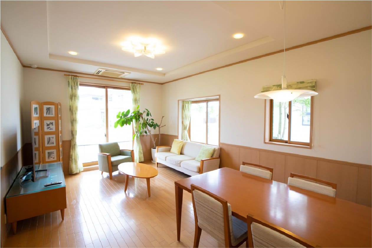 広々としたリビングルームはとても快適で自然と家族が集まってくる空間になります。ここで更に工夫しているのが、キッチンから全てが見渡せること。どこにいても広いのに家族の顔が見られるリビングルームはいつでも安心のひと時を過ごすことができます。
