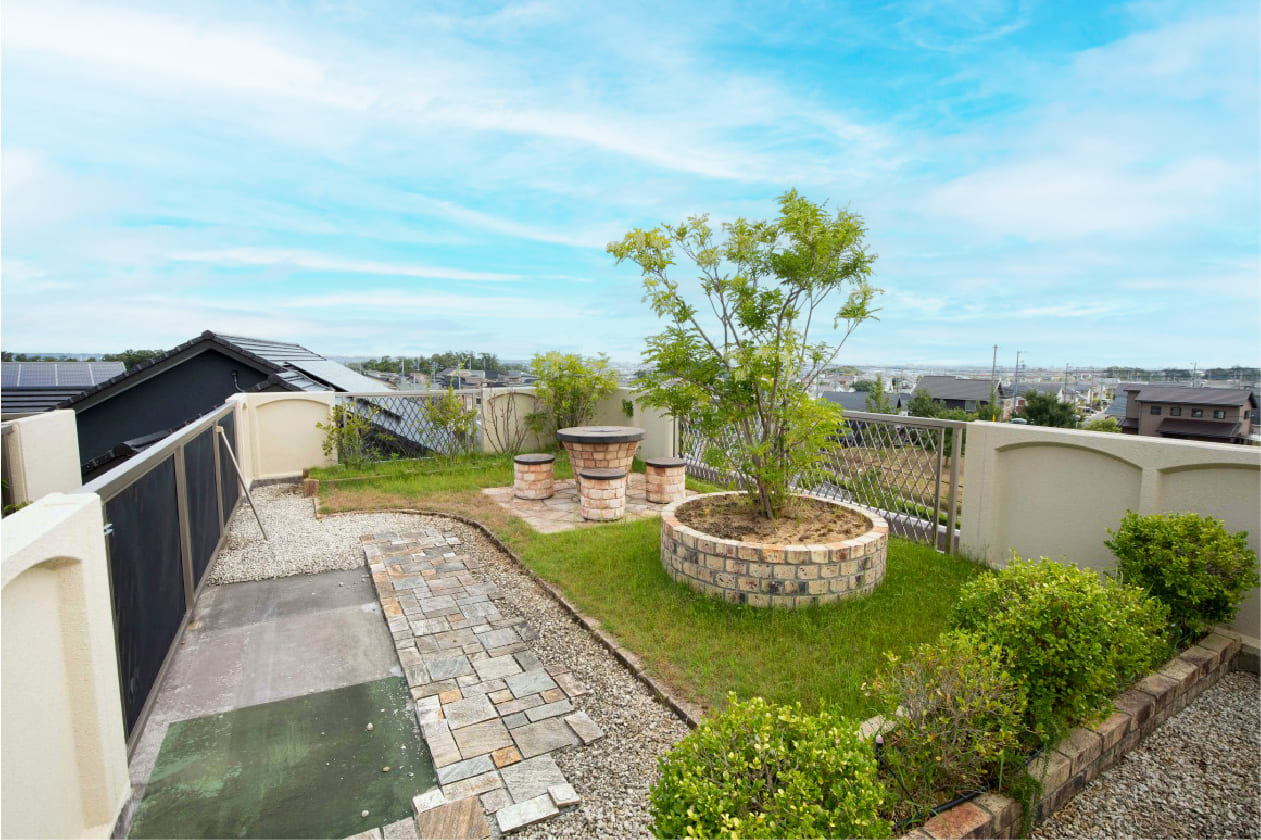 百年住宅の家は鉄筋コンクリートで出来ているから普通の家とは違う楽しさが沢山あります♪BBQや花壇はもちろん、大規模家庭農園や露天風呂だってできますよ。完全プライベート空間のため、皆様の趣味を屋上庭園で演出してみてはいかがでしょうか?(^^)