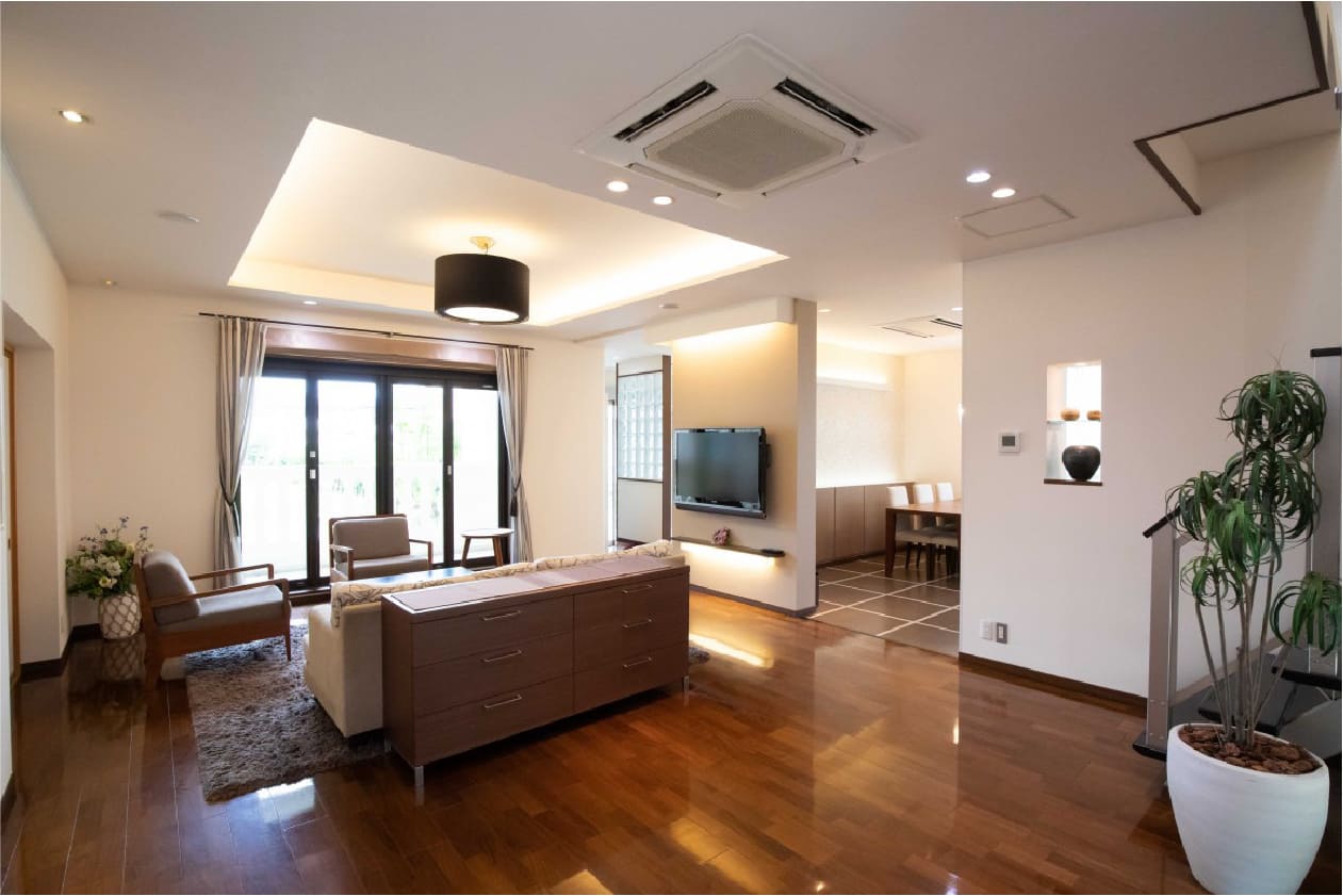 【1F 広々優雅な20帖の家族がいつも自然に集まるリビングルーム】