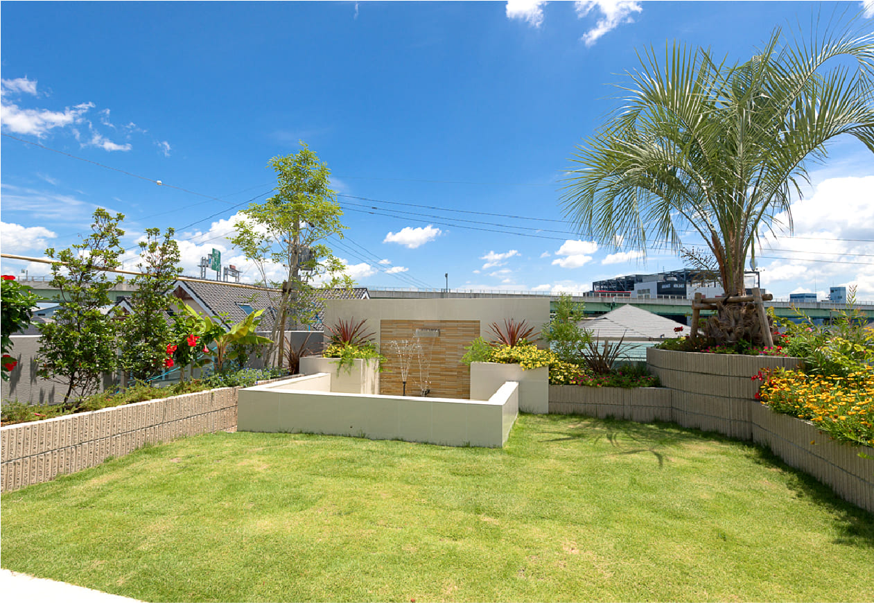 家族の時間が、やわらかく流れるリビング。 落ち着いた雰囲気の寝室。 素敵な笑顔が集まり夢が広がる楽しい屋上庭園。